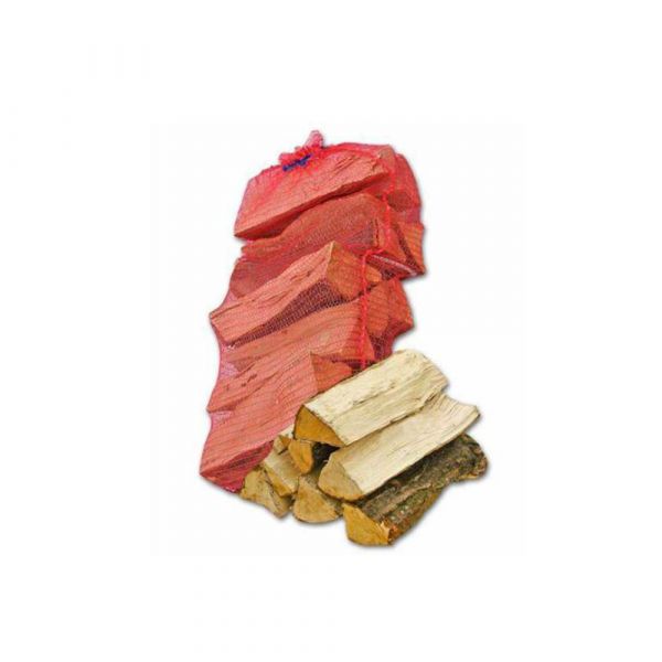 Faggio con corteccia, lunghezza 25×10/15 cm, sacchetto in PVC. Volume 22 dm3. Peso circa 10,5 kg. 30 sacchi da 10